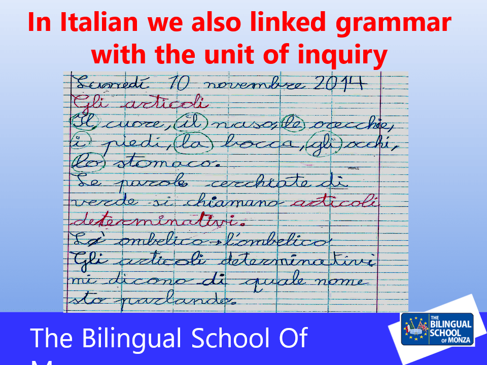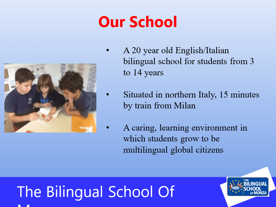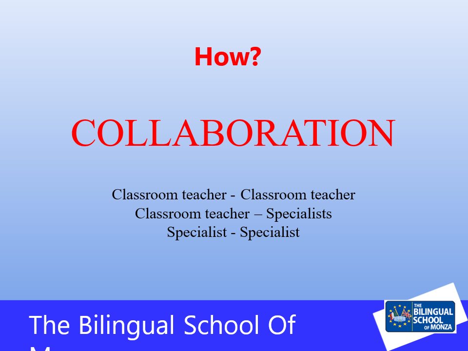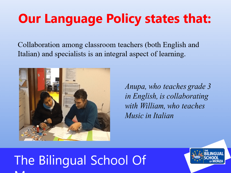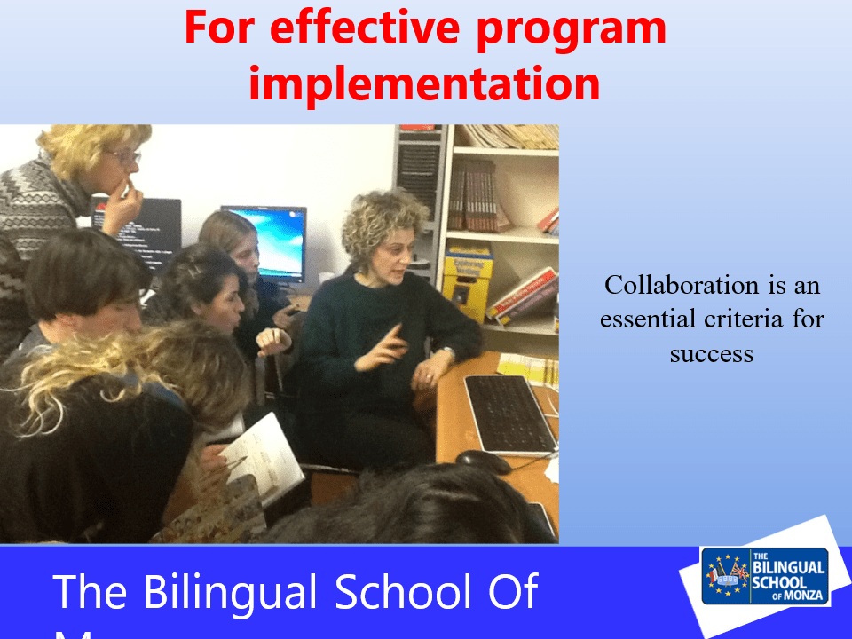 The slide show below provides information regarding the invaluable role that teacher collaboration played at The Bilingual School of Monza, an IB World School, north of Milan, Italy. The slides formed part of a conference presentation in 2016. The four participants also presented at the 2015 ECIS Mother Tongue and EAL Conference, now held under the banner of the Multilingual Learning Conference.
