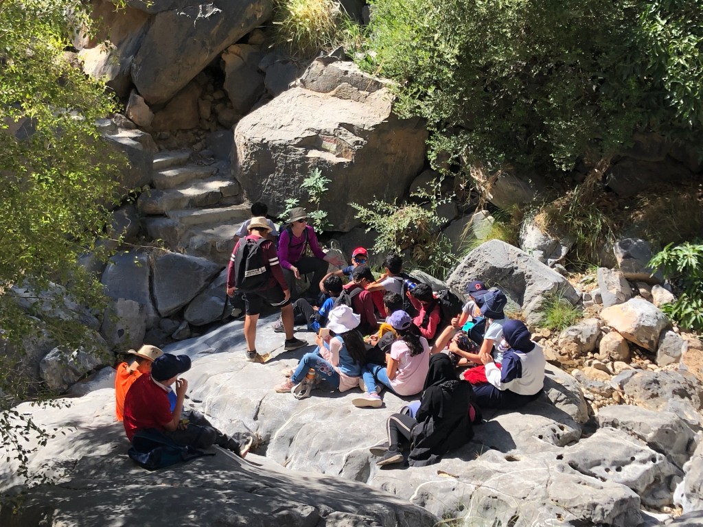Camping in a dry creek bed with Grade 5 students for ‘Oman Week’. Three nights camping and self catering, all organised by classroom staff.
