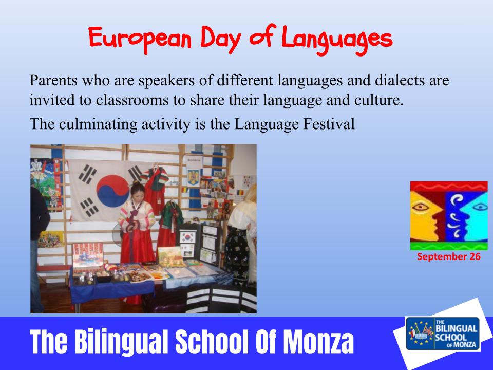 Celebration of UNESCO Mother Language Day, February 21st, and events such as a monthly “Mother tongue Monday” help students to feel connected to their culture and language wherever they are in the world.